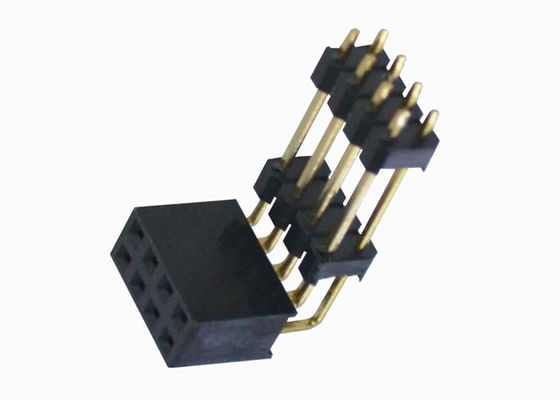plástico dual del conector pin tres de la fila del jefe femenino de ángulo recto de 2.54m m
